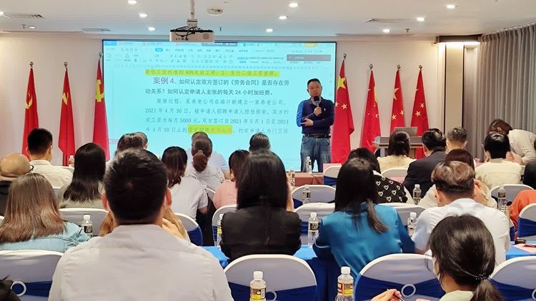 海南法立信律師事務(wù)所合伙人朱星星律師進(jìn)行勞動法律法規(guī)宣講和企業(yè)用工法律風(fēng)險防范講解。從常見勞動關(guān)系風(fēng)險隱患及防控、勞動糾紛調(diào)解方法及技巧、典型案例解析等方面,為廣大用人單位和勞動者講解勞動保障法律法規(guī)。在源頭上幫助企業(yè)化解矛盾、構(gòu)建和諧勞動關(guān)系。