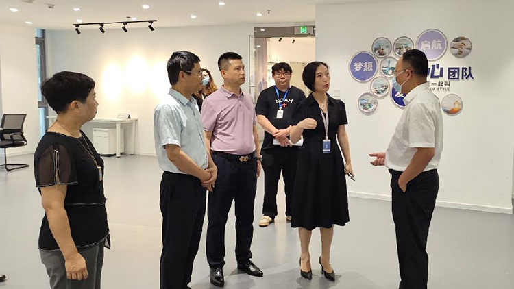 園區(qū)總經(jīng)理劉昕暉、副總經(jīng)理丁鑫曼帶領(lǐng)管理團隊,對周威局長一行的到來表示熱烈歡迎。在基地負責(zé)人的指引下,周威局長一行來到創(chuàng)新創(chuàng)業(yè)孵化基地進行實地考察,先后參觀了眾創(chuàng)空間、多功能直播間、文化展示墻等區(qū)域,同時詳細了解了基地服務(wù)內(nèi)容、配套建設(shè)、入駐企業(yè)(團隊)的項目運營、創(chuàng)業(yè)成果、獲得榮譽等情況。