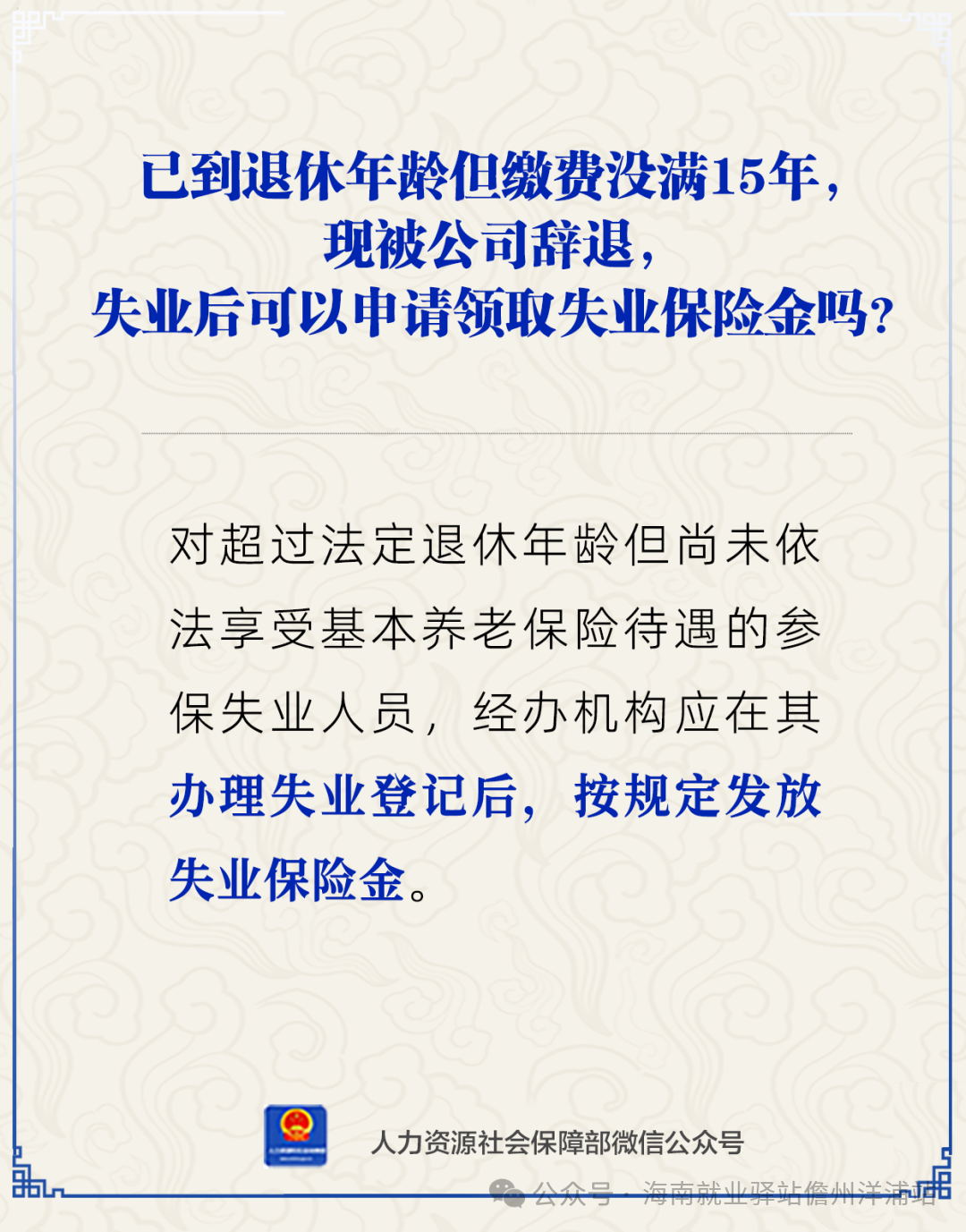 已到退休年齡但繳費(fèi)沒滿15年,現(xiàn)被公司辭退,失業(yè)后可以申請(qǐng)領(lǐng)取失業(yè)保險(xiǎn)金嗎?