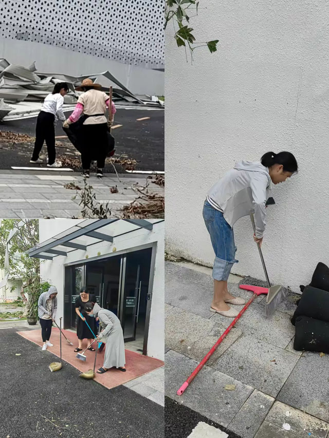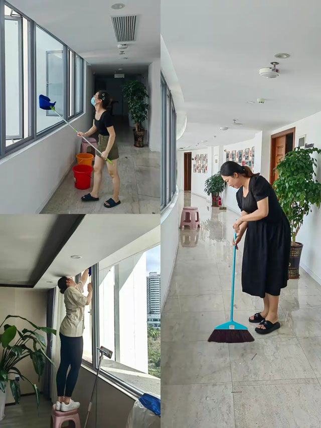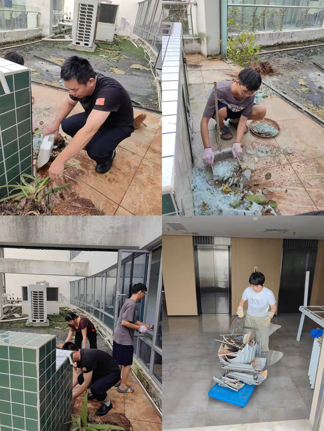 為恢復(fù)園區(qū)舒適的辦公環(huán)境,大家一起對(duì)辦公樓內(nèi)進(jìn)行全面大掃除,清掃災(zāi)后留下的灰塵碎片,清理窗戶(hù)上的樹(shù)葉棉絮,還進(jìn)行了全面的病蟲(chóng)害消殺工作。