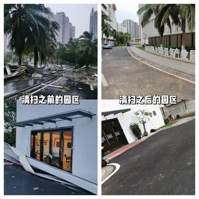 人心齊,泰山移。目前,園區(qū)已經(jīng)恢復(fù)水電供給,通信網(wǎng)絡(luò)及主干線道路暢通。下一步,園區(qū)將持續(xù)推進(jìn)臺(tái)風(fēng)過(guò)后清理恢復(fù)工作,滿(mǎn)足園區(qū)企業(yè)復(fù)工復(fù)產(chǎn)需求,盡快為入駐園區(qū)的幾十家企業(yè)恢復(fù)舒適的辦公環(huán)境,確保園區(qū)安全、平穩(wěn)、有序運(yùn)行!